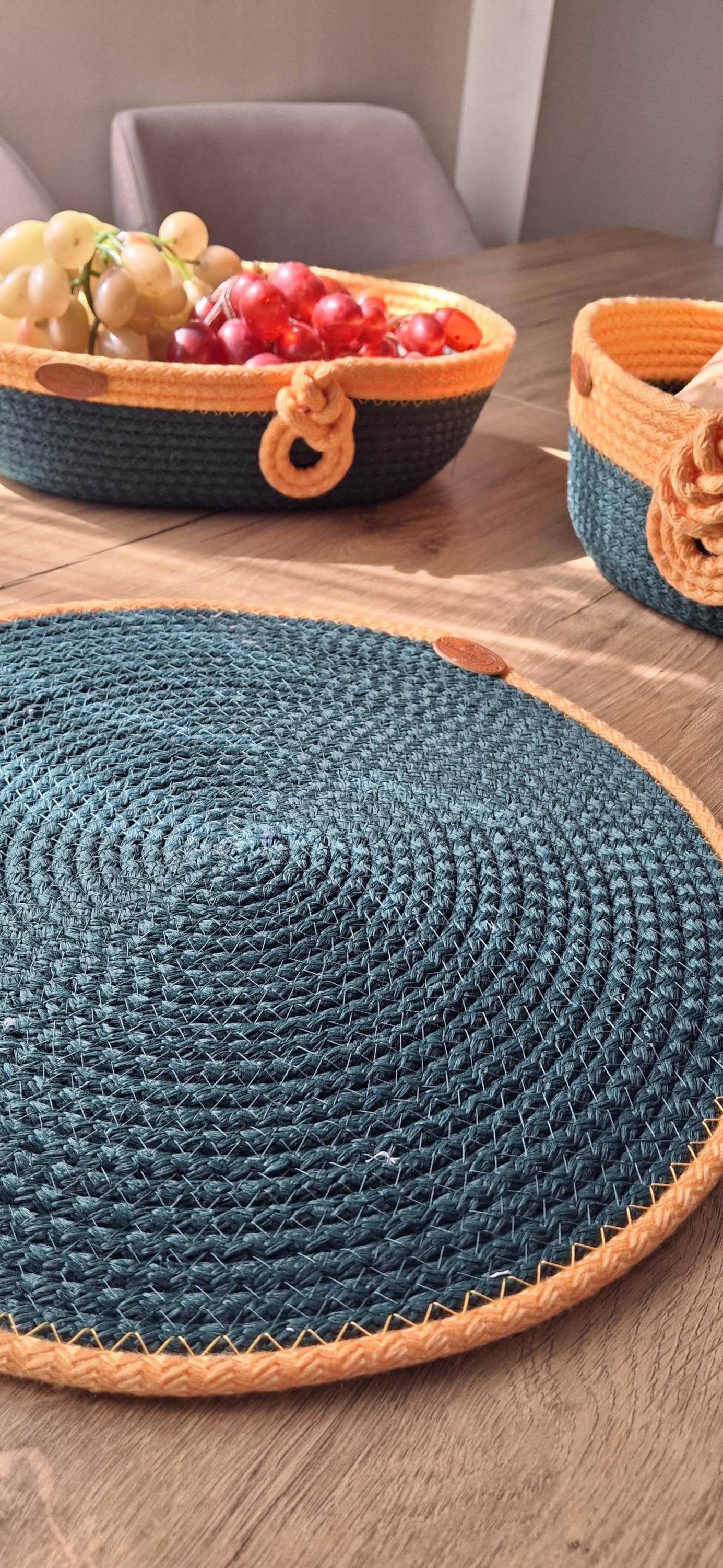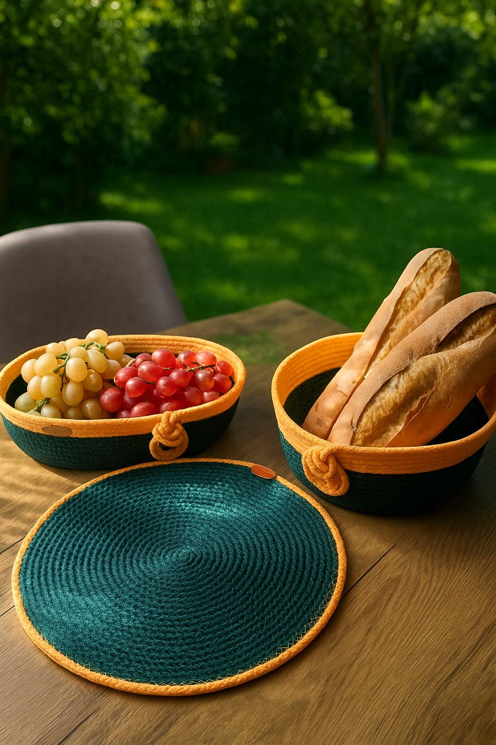 Perfect for serving bread, fruits, or simply as a stylish storage solution, each basket is crafted from high-quality cotton rope and stitched together – no glue, only durable sewing technique.