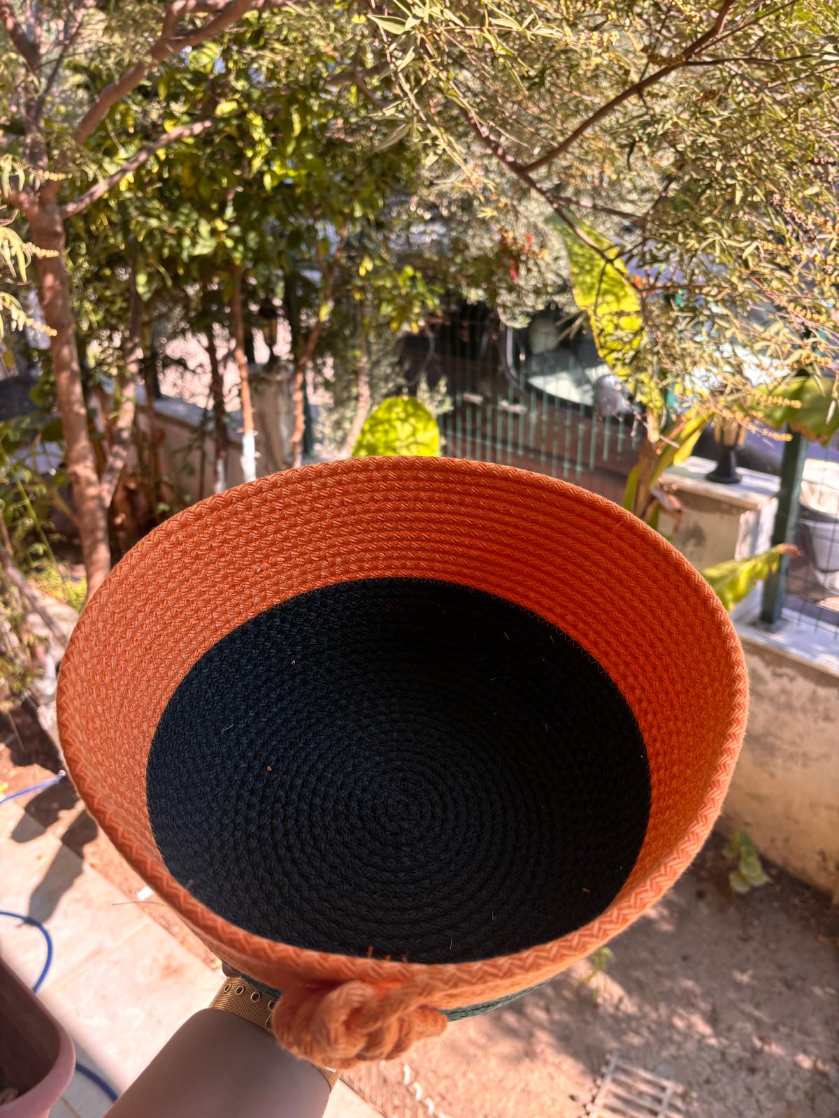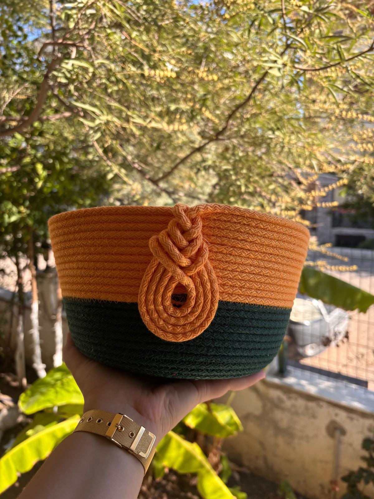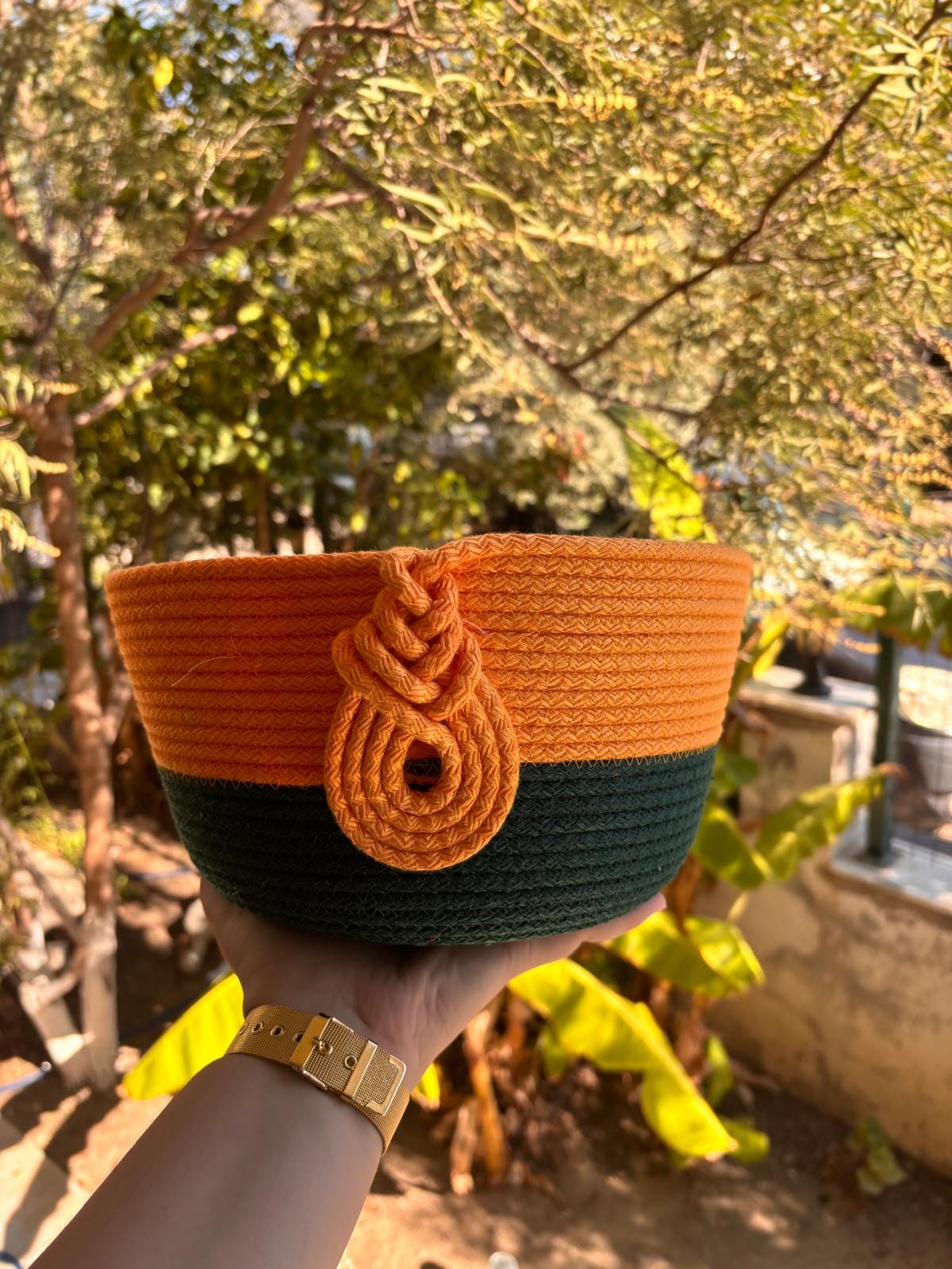 Handmade Rope Basket – Orange & Green Cotton Storage Bowl | Decorative Organizer | Gift for Home or Office